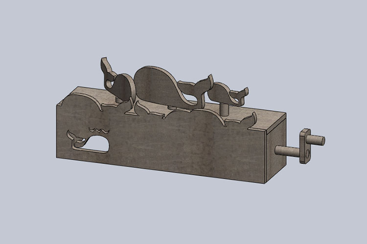 My automata reference came from a video I saw online, where there is a mouse character is trying to catch the food in front of it, the movements were done by egg cams, which it controls the hand and tail of the character. I feel inspiring about how it gives lives and characters into the automata. The idea of my automata is based on the sea waves forms and movements, and how it will look among different layers and distance. I intended to add whales on top of the waves as I want the automata has its characters in it. The whales rotate itself randomly, so that it gives more depth to the ocean scene.